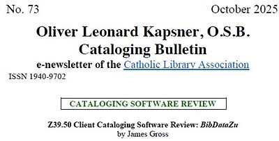 Kapsner Bulletin, issue 73, Catholic Library Association, 2025, pp. 1-10