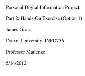 Gross, James. Personal Digital Information Project, Part 2: Hands-on Exercise. 2012.