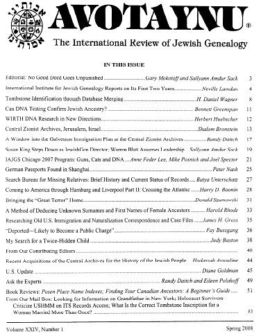 Gross, James H. “Researching Old US Immigration and Naturalization Correspondence and Case Files.” Avotaynu, vol. 24, 2008, p. 35.