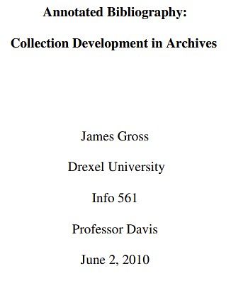 Gross, J. (2010). Annotated Bibliography: Collection Development in Archives.